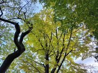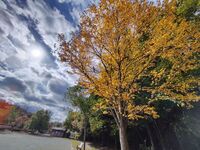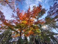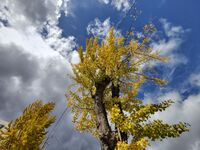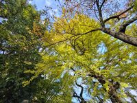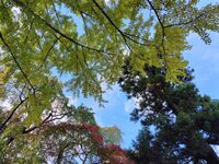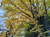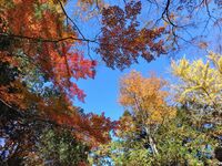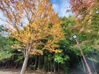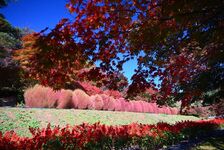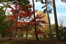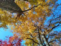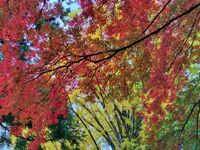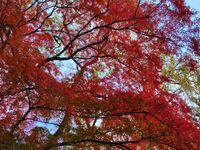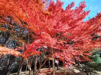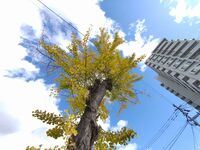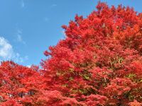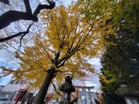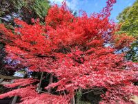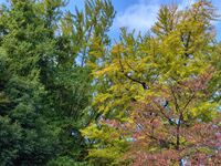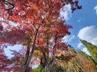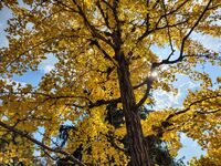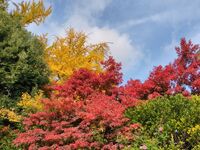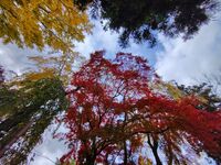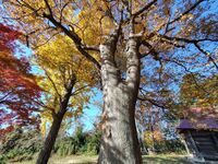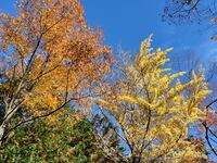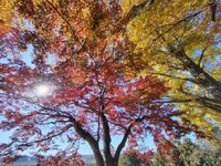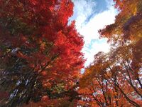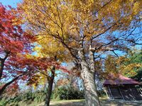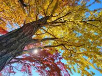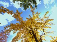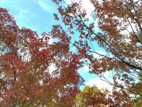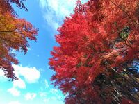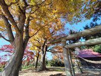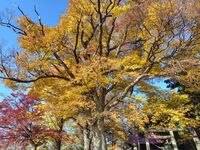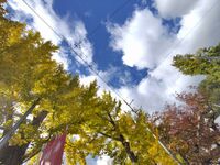 銀杏の黄色、もみじの赤、空の青のコントラストがとても美しかったです。