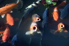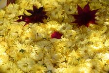 星のようにきらきら光る羽衣藻と真っ赤な彼岸花はよいお友達です♪