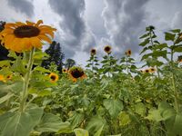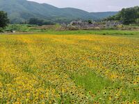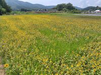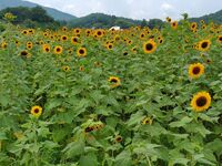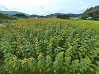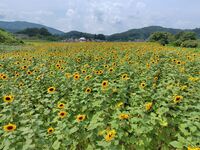 ひまわりでいっぱい、まるで黄色い絨毯を敷いたようです。