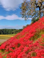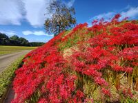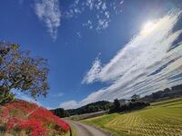 赤い彼岸花と青空と雲がとてもきれいでした♪