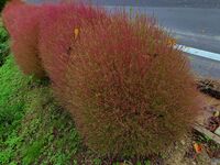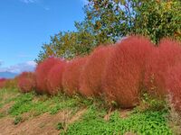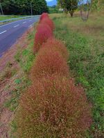 松沢下界の彼岸花に行く途中の道路脇のコキアです。 ほんのりと赤く色づいていました♪ (10月8日撮影)